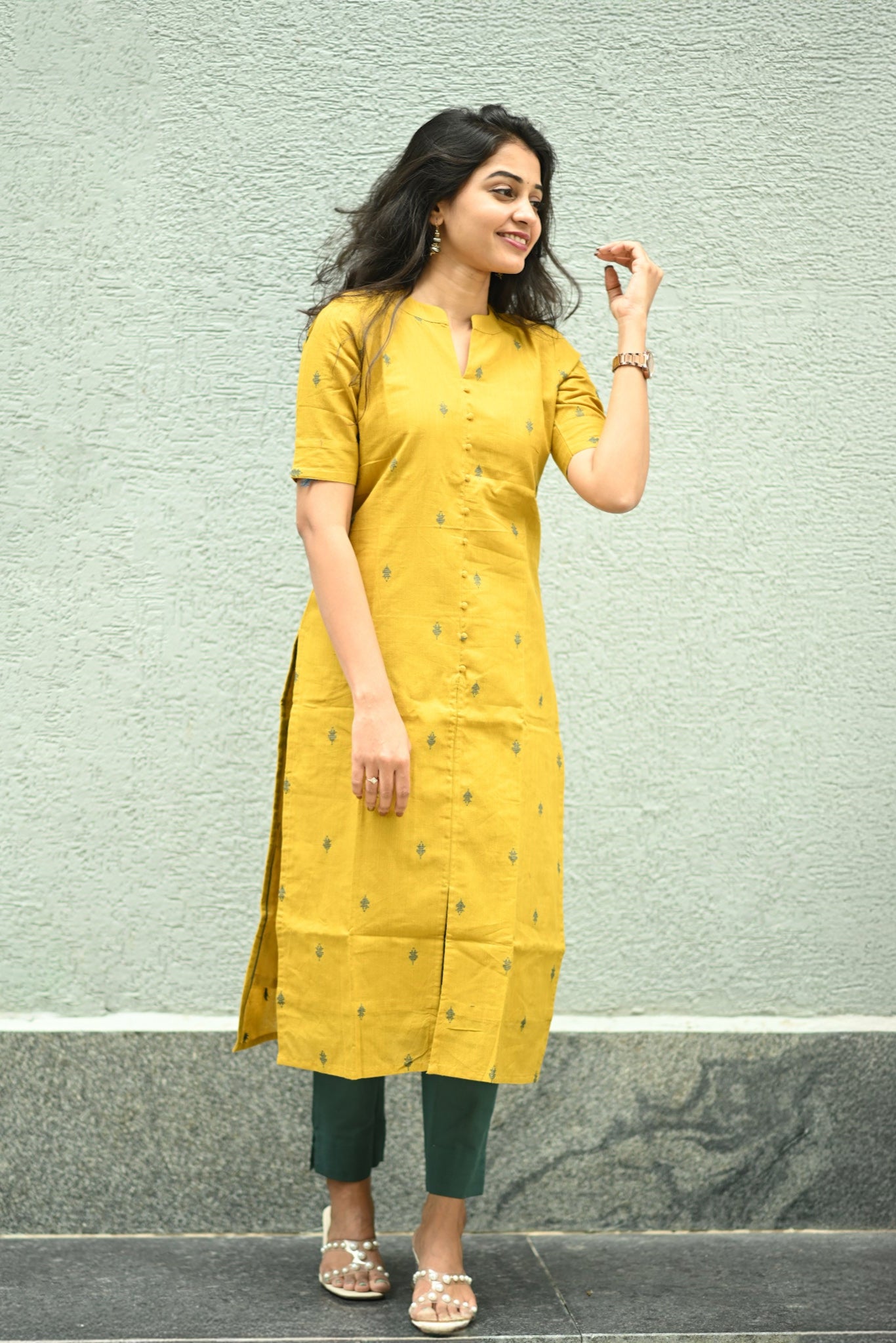 • 🧵 Fabric: Handloom cotton for kurti and south cotton for pants
